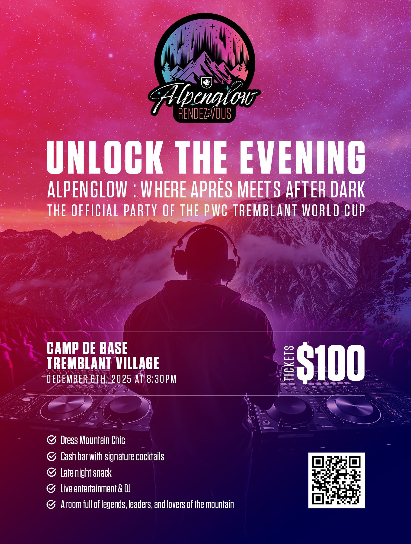 Inspired by the thrill of the PwC Tremblant World Cup, this high-energy après-ski soirée celebrates the spirit of skiing long after the last chairlift closes.